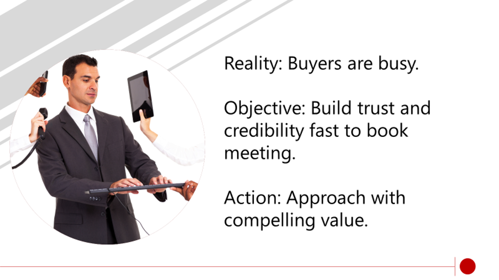 Zero sales meetings booked in a week versus 50 or more yeses to meet with you. Your choice.